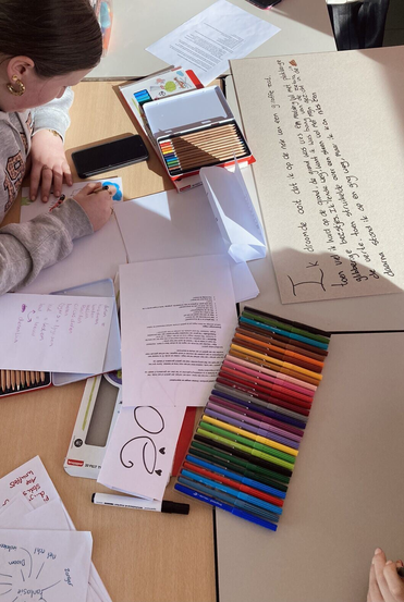 Tijdens een workshop Creatief Schrijven op het MBO Scalda begonnen enkele studenten van de opleidingen Kinderopvang en Onderwijsassistent met weinig vertrouwen in hun creatieve vaardigheden. Dat veranderde al snel. In een open, veilige en inspirerende omgeving, waar ze actief werden aangemoedigd, ontstond er een sfeer van nieuwsgierigheid en samenwerking. Ideeën werden gedeeld, verhalen kwamen tot leven en iedereen werd uitgedaagd om buiten de gebaande paden te denken. Aan het einde van de les presenteerde elke student vol trots zijn of haar werk en reflecteerde op wat er was geleerd. Door een omgeving te creëren waar studenten werden aangemoedigd en de vrijheid kregen om te experimenteren, groeide hun zelfvertrouwen. Dit resulteerde in een groep die enthousiast en met een voldaan gevoel de klas verliet.